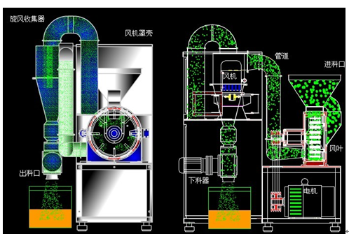 主要用途: 該機組適用于制藥、食品、化工等行業,具有風冷、無篩網等多種性能,它不受物料粘度、軟硬度及纖維等限制,對不同物料能起到較好的粉碎效果。適用于粉碎帶纖維的中藥材、帶一定油性的物料。 工作原理: 該機由加料斗,分級輪,粉碎刀片,齒圈,粉碎電機,出料口,風葉,集料箱,吸塵箱等部分組成,物料由加料斗進入粉碎室,通過高速旋轉的刀片進行粉碎,調節分級輪與分級盤的距離來達到所要求的物料細度,高速旋轉的風葉把達到要求的物料從粉碎室引到集料箱布袋中,沒有達到要求的物料繼續在粉碎室中粉碎,集料箱布袋產生的粉塵由吸塵箱收集,該機組結構簡單,操作清理方便,噪音小,產量高,機器采用不銹鋼材料制作,粉碎過程中無粉塵飛揚。 主要特點: ZFJ系列中草藥粉碎機新穎大方、不銹鋼制作、結構緊湊、生產效率高、降低生產成本且提高生產效力,基本無易損件,操作簡便。該機組設計原理合理,能粉碎不同纖維性較強的物料,適合五谷雜糧溫控合理,過濾回收率在99.8%以上。 |