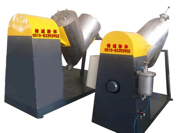 混料筒一般用不銹鋼制作,內(nèi)外比拋光,結(jié)構(gòu)設(shè)計(jì)上保證無積料死角,清洗方便徹底。筒體上部有兩個(gè)進(jìn)料口,下部有一個(gè)出料口。桶體可用手轉(zhuǎn)動(dòng),以便于出料。另可帶強(qiáng)制攪拌裝置,有利于一些特殊物料的充分混合,或者可以附帶加濕裝置,改善噴霧造粒后的粉體的含水率。